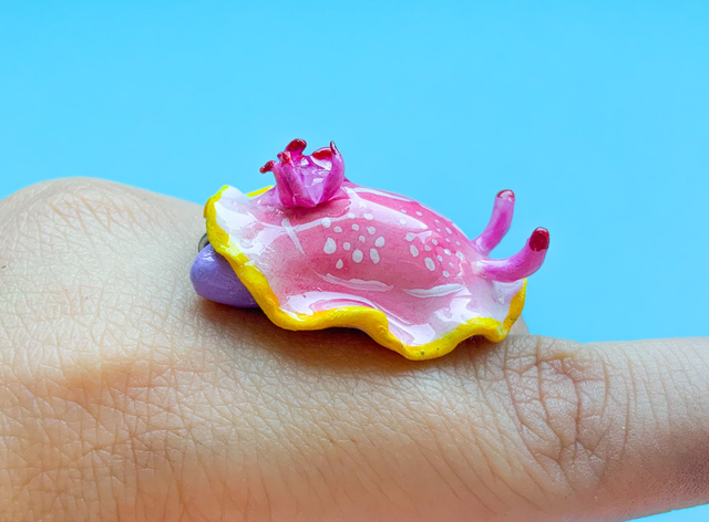 Charm of the specie " Felimida krohni" made of polymer clay and coated with UV epoxi resin. It has a ring to be used as a pendant/keychain/bracelet with a diameter of 2 mm. Does not include pendant. Unique piece.