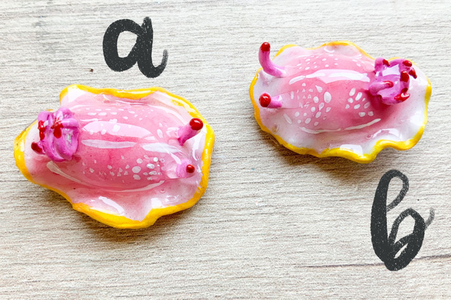 Charm (pequeño accesorio que se coloca en un collar o pulsera) de la especie " Felimida krohni" hecho con arcilla polimérica y recubierta de resina epoxi UV. Tiene una argolla para poder usarse de colgante/llavero/pulsera con un diámetro de 2 mm. No incluye colgante. Pieza única.