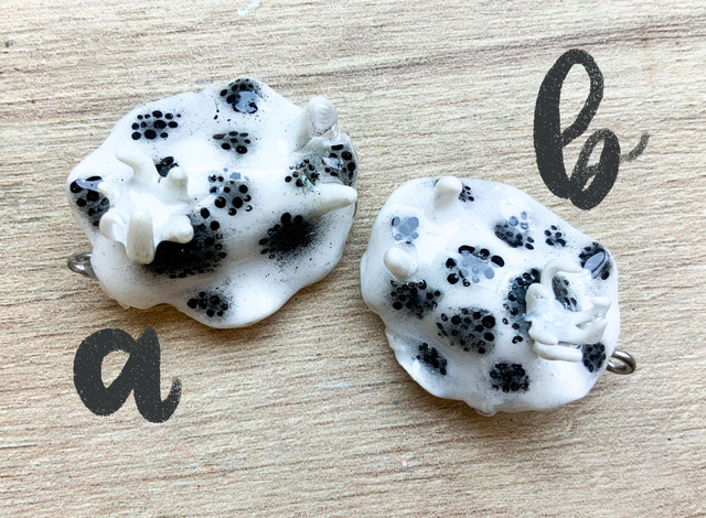 Charm (pequeño accesorio que se coloca en un collar o pulsera) de la especie "Peltodoris atromaculata" hecho con arcilla polimérica y recubierta de resina epoxi UV. Tiene una argolla para poder usarse de colgante/llavero/pulsera con un diámetro de 2 mm. No incluye colgante. Pieza única.